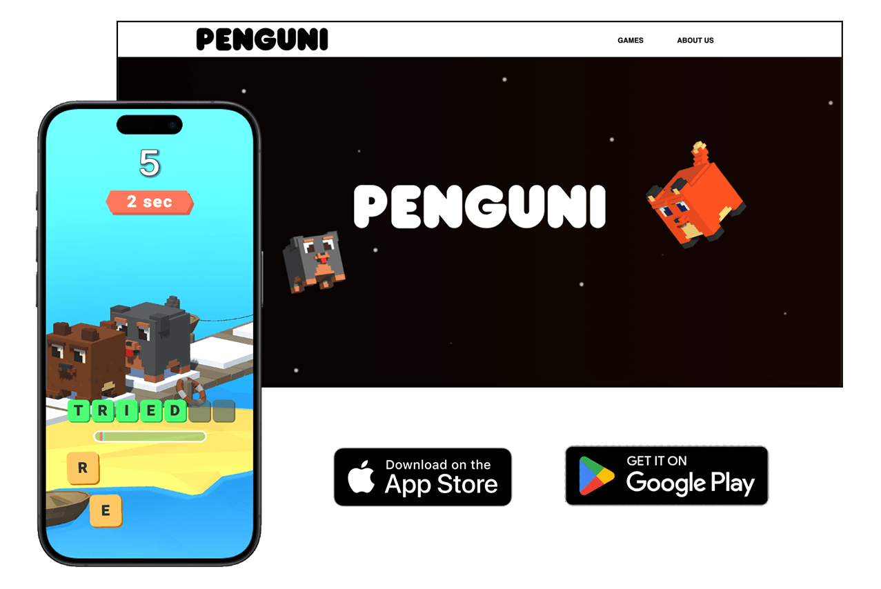 Penguni is a small company that I have created to publish games. As of now I have created and published a game called Board Rush, a multiplayer word game for mobile. I used the Unity engine for the game development, and Firebase as the database. The app made it to the top 50 in the word category on the App Store.